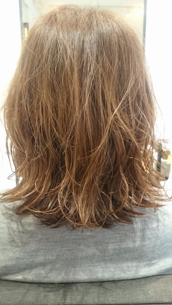 長くお付き合いさせていただいているお客様なのでイメージの共有はバッチリでした。パーマをかけて洗いっぱなしのようなラフなスタイルに仕上げたかったので、初めに糸チップをとりブリーチして3D感を出し、その後アディクシーのグレーパールで染めました。